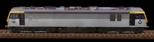 The major parts of class 92 model, main body mesh and bogies, support three levels of detail (LOD) to allow the modelling of details without impacting performance adversely. Other parts of the model attached at runtime, couplers, hoses, and cables, provide two levels of detail. As a guide to the impact on your system performance, the model with all attachments and bogies at maximum level of detail is in the region of 17,200 polygons and when viewed at a distance this reduces to approximately 5,000. The main texture file is 1024 x 512 and there are a couple of smaller textures as well. The model should be usable on pretty much any system capable of running TRS 2004.