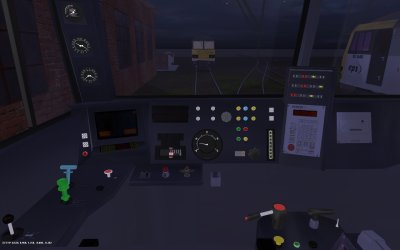 The rendering of the cab is affected by the exterior lighting conditions and the dials are correctly illuminated for operation during darkness. Warning lights are provided for a number of conditions on the central panel. If it's too dark of course you can always turn on the cab interior lights which are controlled, along with a number of other things such as the locos exterior lights, from the panel above and to the left of the driver's head.